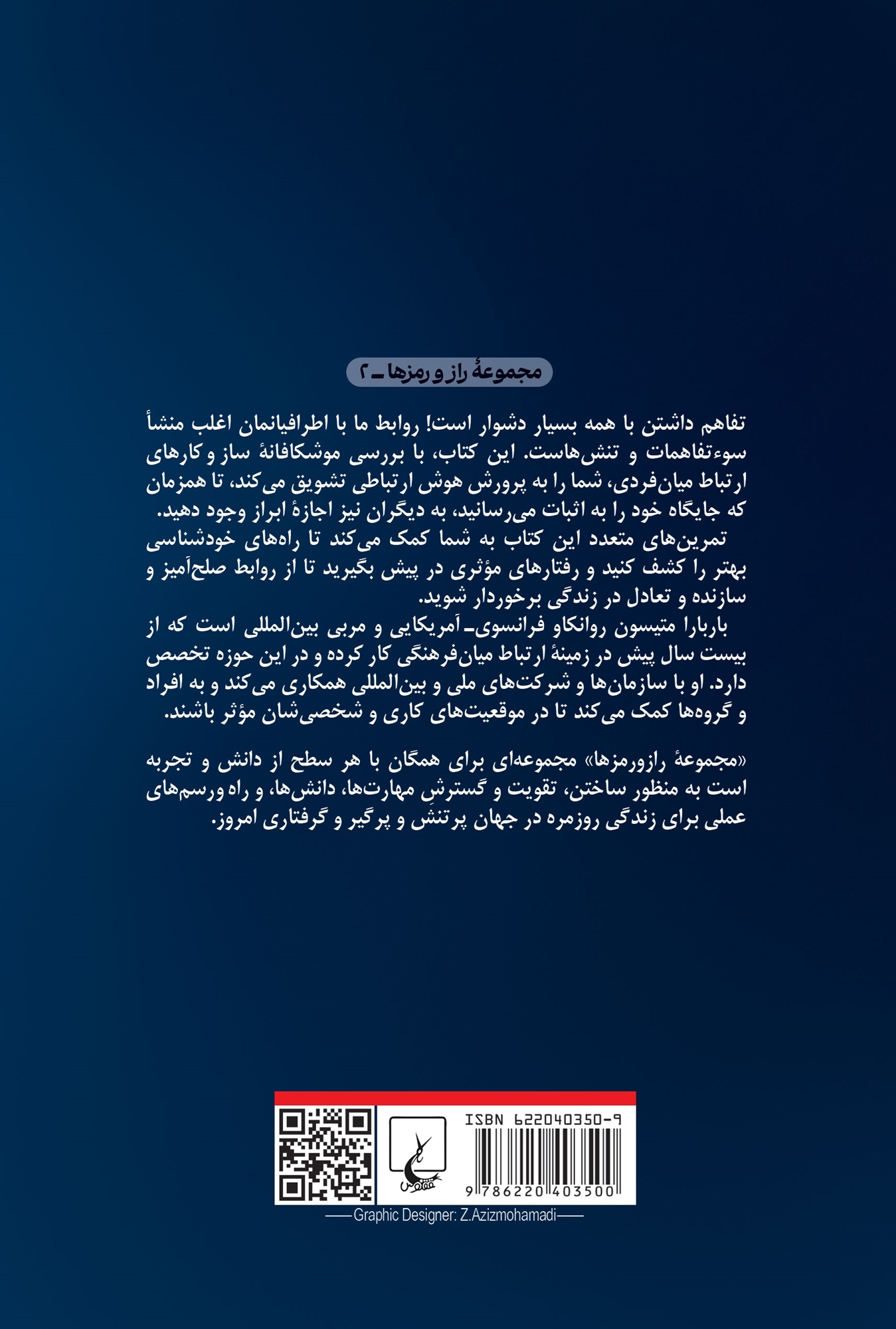 کتاب راز و رمز برقراری ارتباط، با بررسی ساز و کارهای ارتباطات میانفردی، به ما کمک میکند تا ظرفیتهای ارتباطی خود را گسترش دهیم، خود را بهتر بشناسیم، در جریان مراودات رفتار صحیحتری در پیش گیریم و با حفظ تعادل در رابطه آن را به تجربهای سازنده و صلحآمیز بدل کنیم.