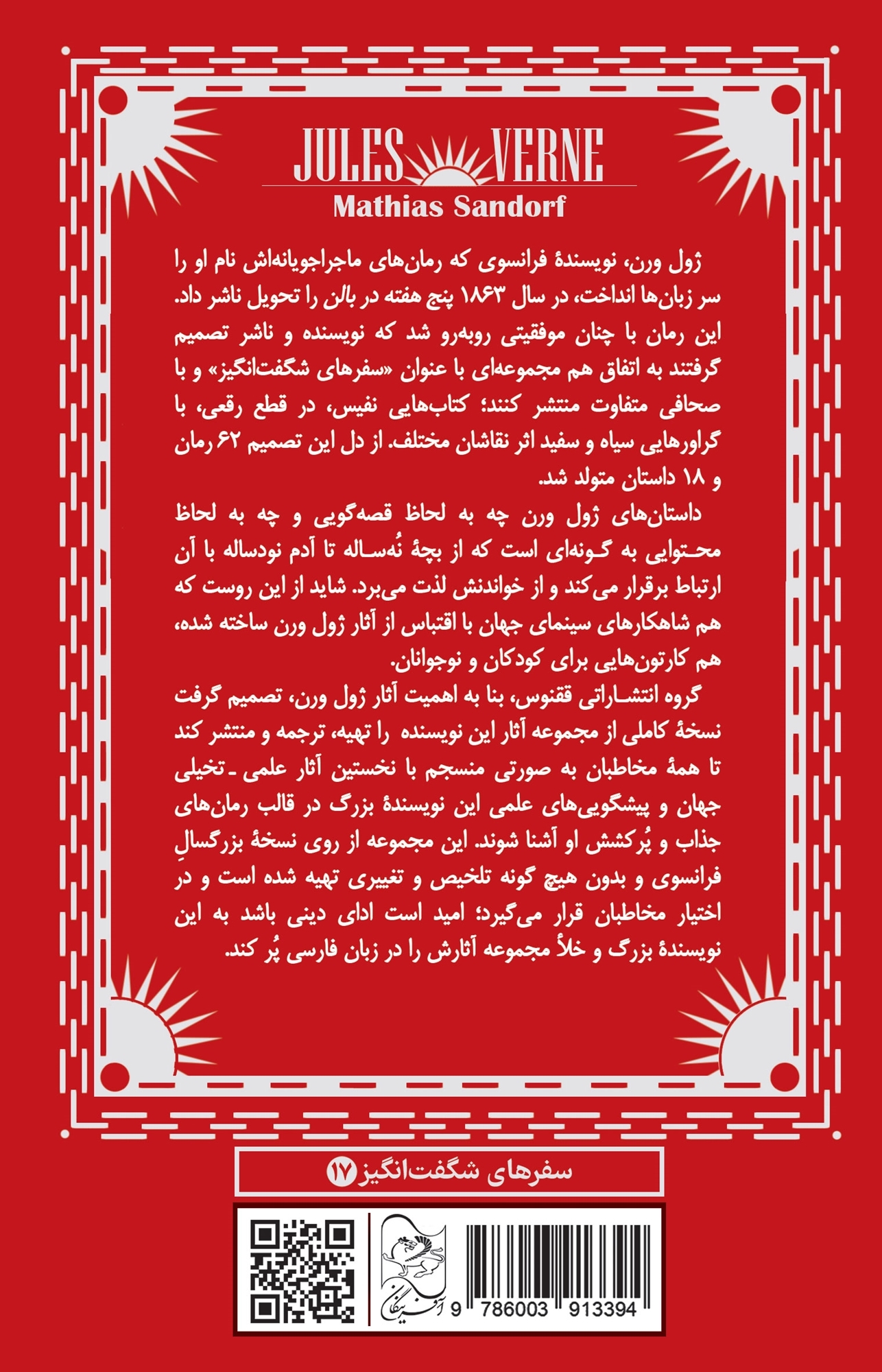 گروه انتشاراتی ققنوس، بنا به اهمیت آثار ژول ورن، تصمیم گرفت نسخۀ کاملی از مجموعه آثار این نویسنده را تهیه، ترجمه و منتشر کند تا همۀ مخاطبان به صورتی منسجم با نخستین آثار علمی- تخیلی جهان و پیشگوییهای علمی این نویسندۀ بزرگ در قالب رمانهای جذاب و پرکشش او آشنا شوند. این مجموعه از روی نسخۀ بزرگسالِ فرانسوی و بدون هیچ گونه تلخیص و تغییری تهیه شده است و در اختیار مخاطبان قرار میگیرد؛ امید است ادای دینی باشد به این نویسندۀ بزرگ و خلأ مجموعه آثارش را در زبان فارسی پُر کند.